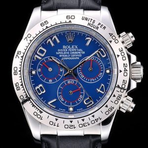 Rolex Daytona Stainless Steel Case Blue Dial Black Leather Strap