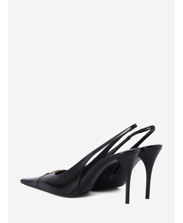 & Free ShippingBabylone Breteuil pumps in smooth calfskin leather. They feature an elongated cut-out toe with a Cassandre logo, an elastic ankle strap, a stiletto heel, a round metal tag with an engraved logo on the insole, and a leather sole. Dust bag included. Any imperfections in the leather should not be considered manufacturing defects but rather a characteristic of the material. Heel height: 9cmITA size