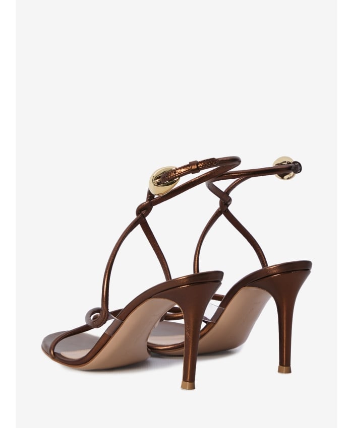 & Free ShippingBlack Mamba 85 sandals in brown metallic-effect leather. They feature a round toe, woven design, a tubular strap with a snakehead-shaped metallic buckle, a stiletto heel, and a leather sole. Dust bag included. Any imperfections in the leather should not be considered manufacturing defects but a characteristic of the material.Heel height: 8,5cmITA size
