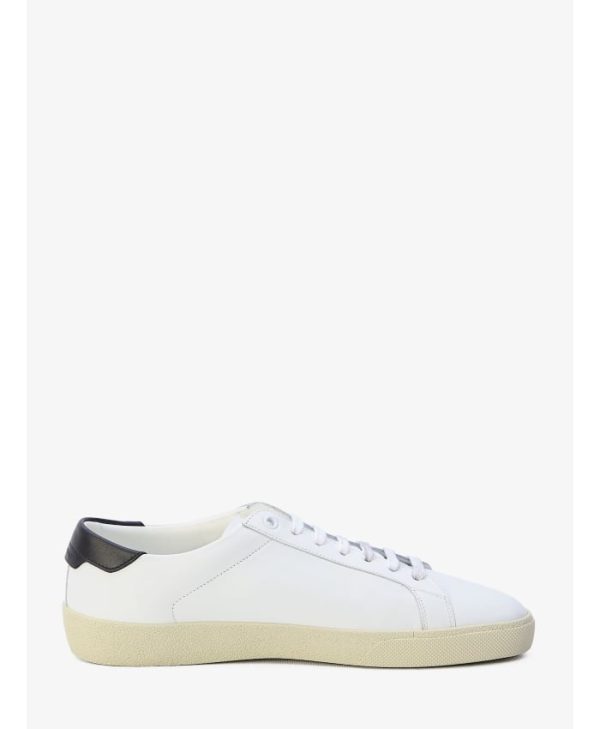 & Free ShippingCourt SL/06 sneakers in white calfskin with Saint Laurent lettering sewn on the exterior side and black leather detail at the back with embossed Saint Laurent logo. They feature lace-up closure and rubber sole. Dust bag included. Any leather imperfections are not to be considered manufacturing defects, but a peculiarity of the material.ITA size.