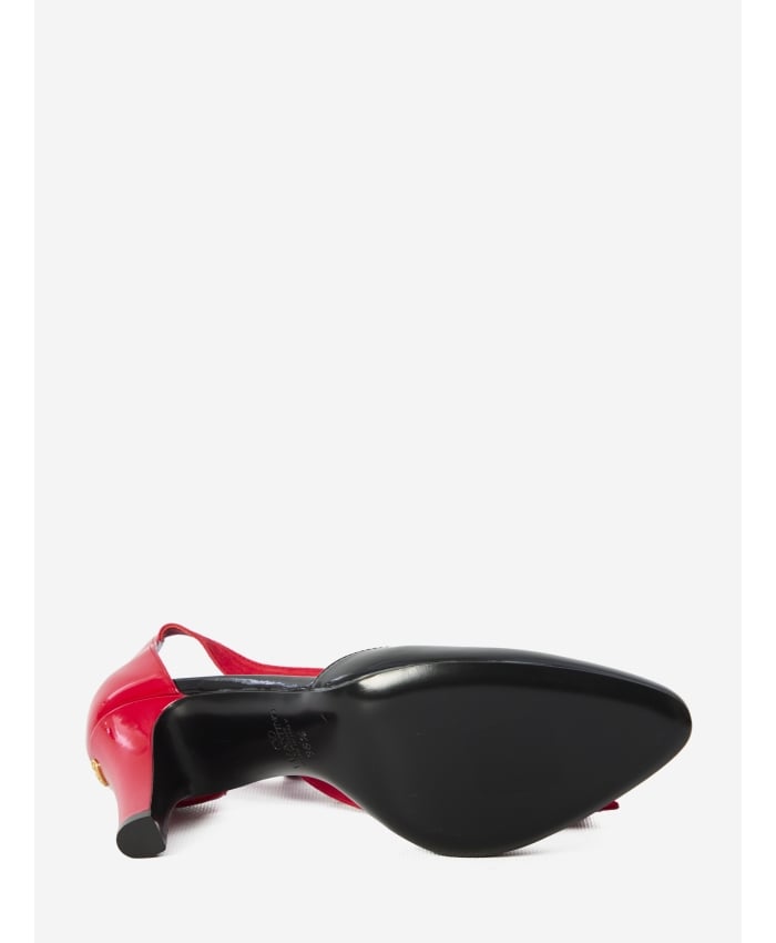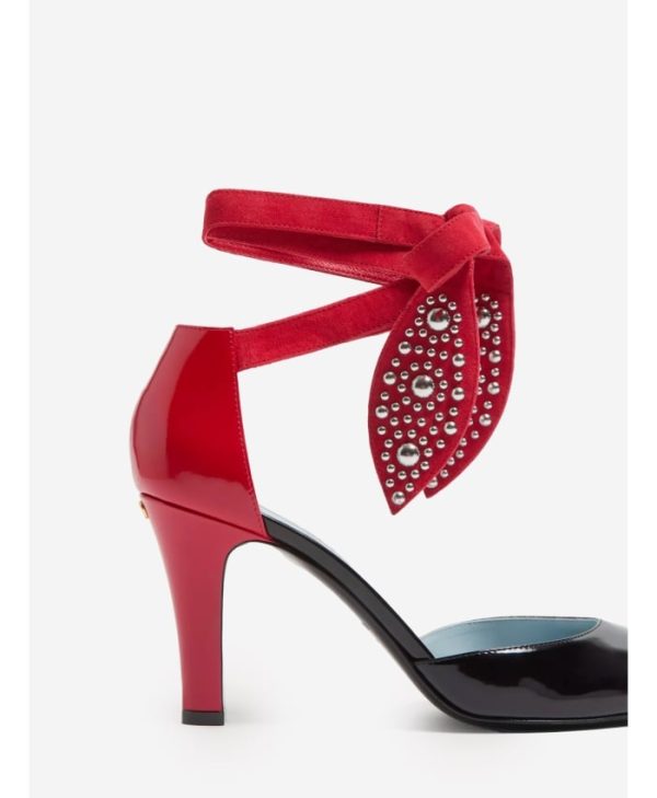 & Free ShippingFoliefoliage pumps in black and red polished calfskin. They feature an ankle tie with a leaf-patterned bow embellished with palladium-finish studs in varying sizes, and a VLogo Signature detail in antique-effect brass on the heel, red leather-covered heels, light blue insole with an embossed logo and leather outsole. Dust bag included. Any imperfections in the leather are not to be considered manufacturing defects, but rather a unique characteristic of the material. Heel height: 8,5cmITA size.