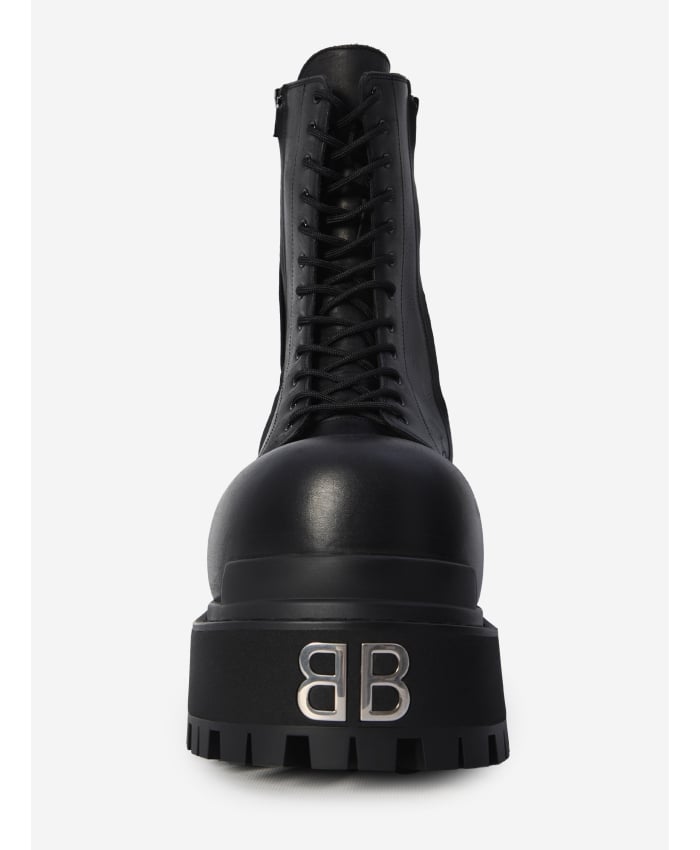 Giant boots in soft black calfskin leather with a worn effect. They feature an ultra-round toe, internal and external zip closures with bellows, a laced upper with twelve eyelets, a BB logo on the front of the sole, a heel tab, and a thick rubber treaded sole. Loose fit. Dust bag included. Any imperfections in the leather should not be considered manufacturing defects, but a characteristic of the material.ITA sizePlatform height: 8cm