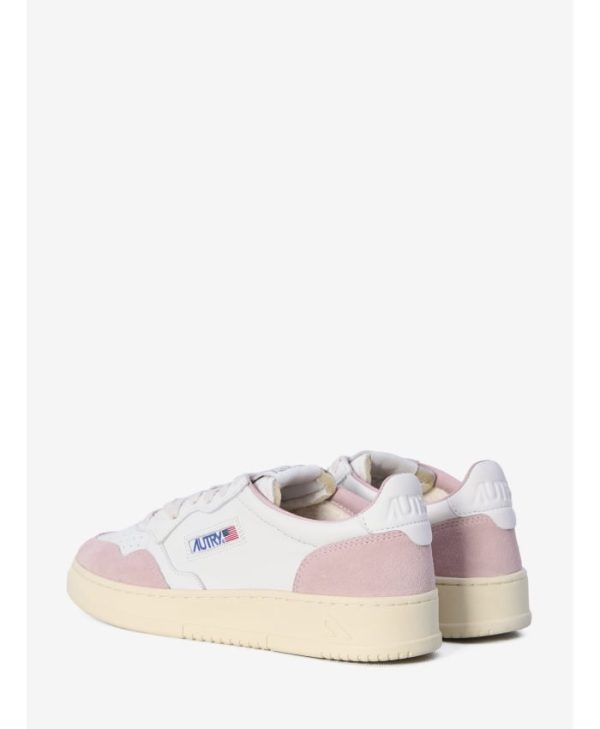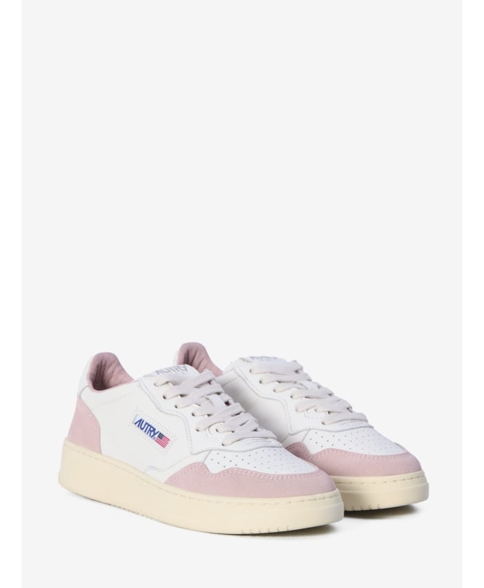 Low-top Medalist sneakers in white leather with pink suede inserts, white detail on the heel and rubber sole. They feature lace-up closure, perforated toe, side detail with Autry blue logo, logo on tongue and embossed logo at the back. Dust bag included. Any leather imperfections are not to be considered manufacturing defects, but a peculiarity of the material.Sole height: 3,5cmITA size.