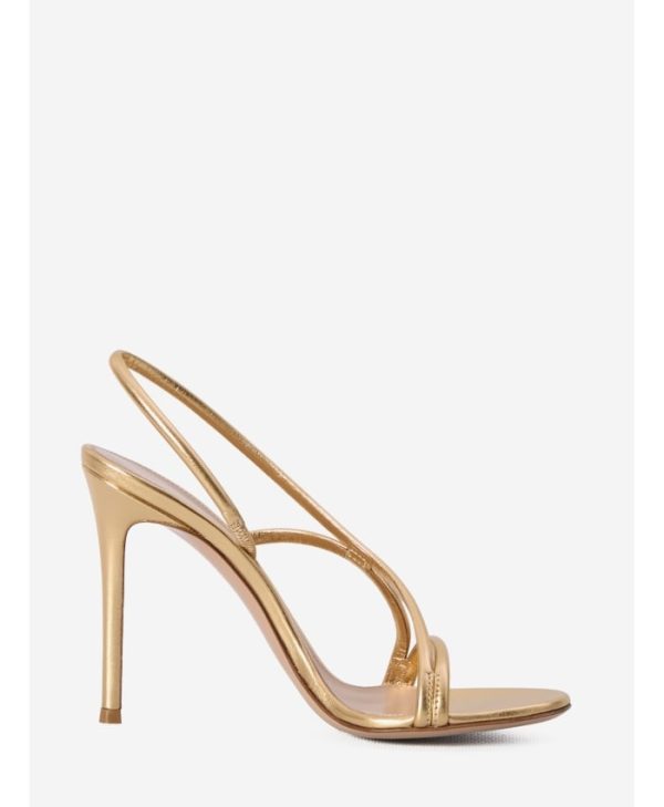 & Free ShippingMetallic gold leather sandals. They feature a round toe, woven design, an elastic tubular ankle strap, a stiletto heel, and a leather sole. Dust bag included. Any imperfections in the leather should not be considered manufacturing defects but a characteristic of the material. Heel height: 10cm ITA size