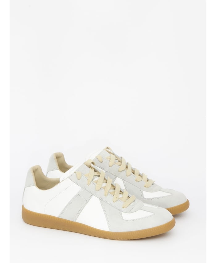 & Free ShippingWhite and grey Replica sneakers in suede and calf leather with beige rubber sole. They feature lace-up closure, round toe and branded tag on the insole. Dust bag included. Any leather imperfections are not to be considered manufacturing defects, but a peculiarity of the material.ITA size.