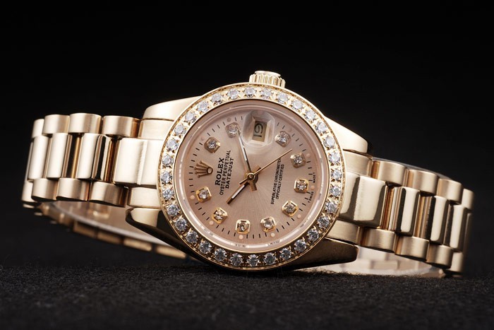 Crown: 18k yellow gold plated steel cutwork crown with Rolex logo