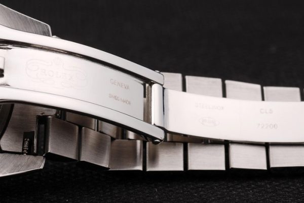 Back: Push in stainless steel back with green Rolex sticker and markings
