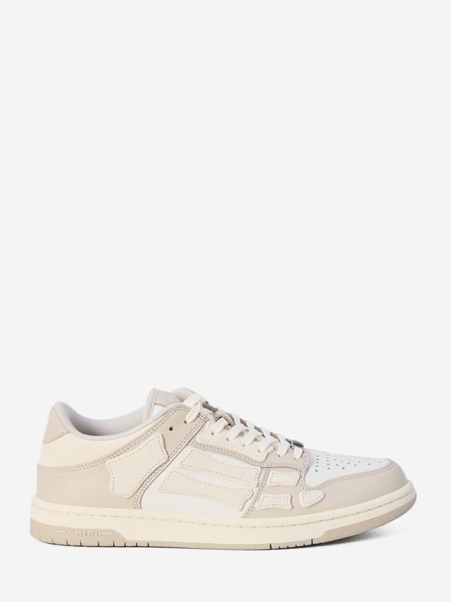 & Free ShippingSkel-Top Low sneakers in alabaster and white leather with applied bone details in alabaster suede. They feature a perforated toe, lace-up closure, Amiri logo on the tongue, heel, and sole, and a rubber sole. Dust bag included. Additional laces included. Any imperfections in the leather are not to be considered manufacturing defects but rather a characteristic of the material.ITA size